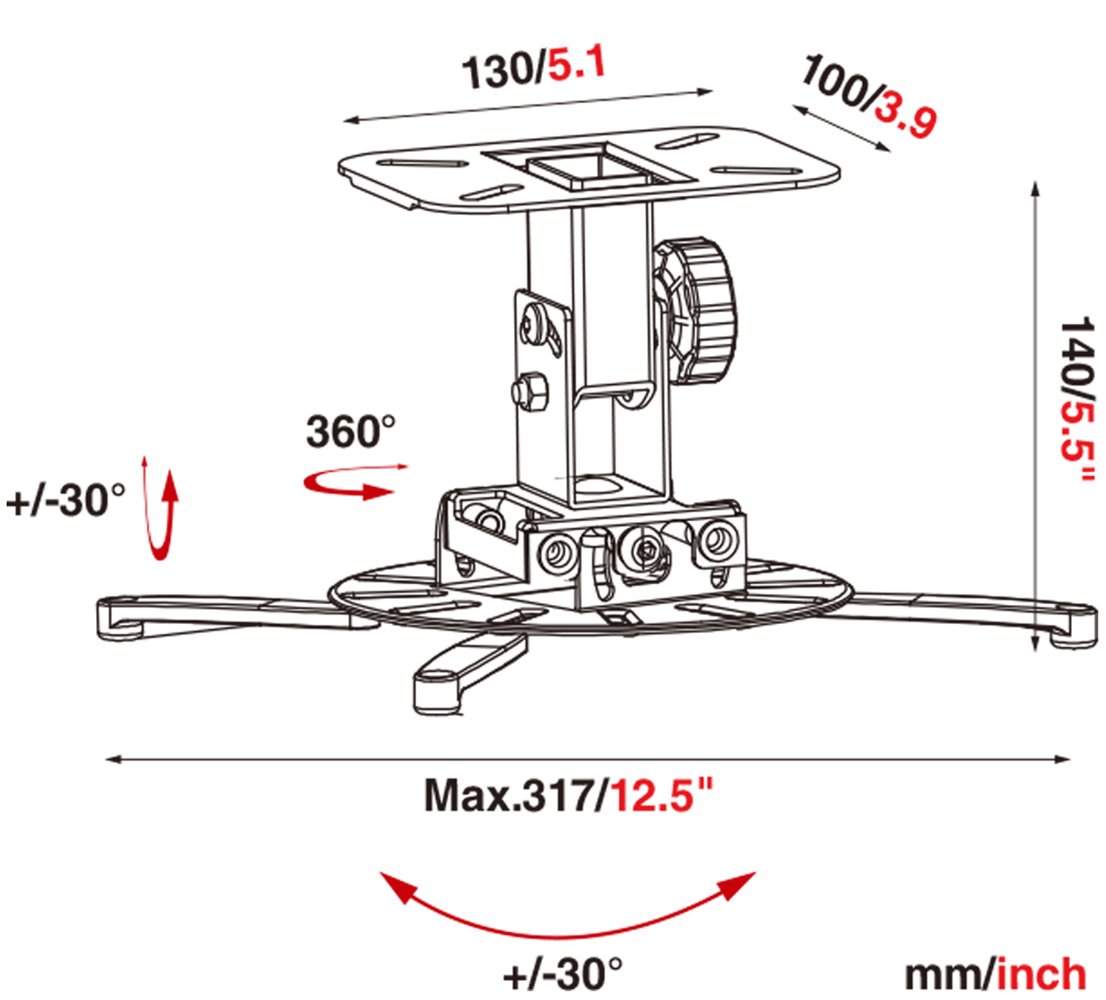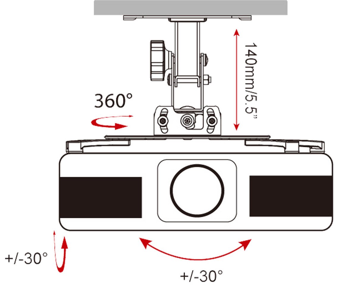 You can adjust the stepless angle up to 30 ° with the projector facing down!