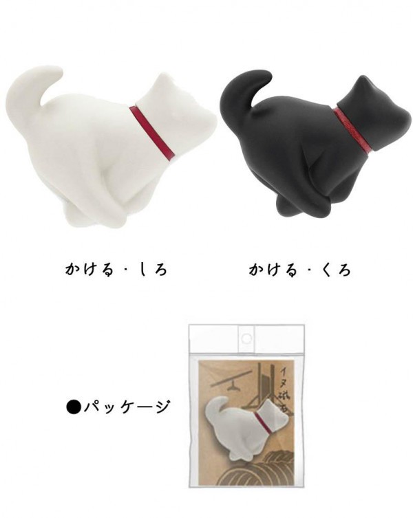 シンプルな形の中に犬の愛らしさを表現したマグネットです。とび出したしっぽはフック状になっているので、輪ゴムやマスキングテープなどの小物をかけることができます。 |