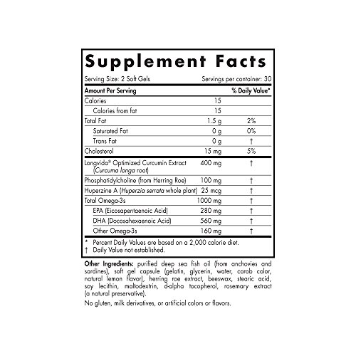 COGNITIVE CLARITY AND MEMORY AID - ProDHA combines highly bioavailable nutrients to promote healthy cognition. The omega-3s EPA and DHA, along with phosphatidylcholine, support the structure and function of brain cells. Optimized curcumin and huperzine A help efficiently move information throughout the brain and protect neurons by reducing the damaging effects of oxidative stress. This powerful vitamin helps with overall cognitive clarity.