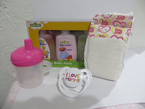 -. Title : Play Set for Baby Alive Super Snacks Snackin Sara with Hair- MOMMY Pacifier, Baby Alive Sippy Cup + Diaper + Lotion - No Doll