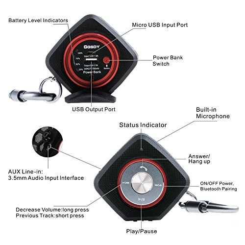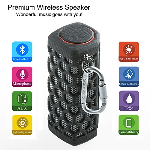GSWORDY Wireless Bluetooth Speaker Portable Waterproof Outdoor with Rechargeable Battery and Handsfree Speakerphone(Black)