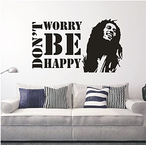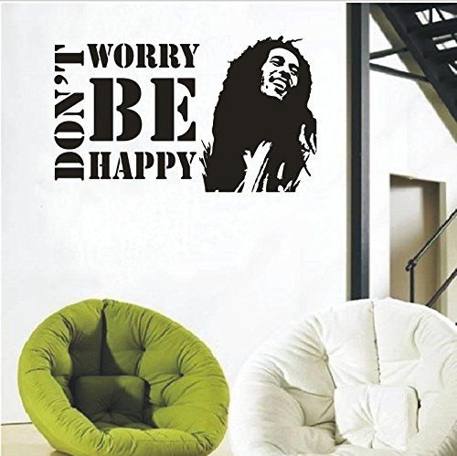 Vinyl Wall Decals Don't Worry Be Happy BOB MARLEY Music Quote Wall Sticker Art Interior Bedroom Indoor Decor Mural Home Decor Wallpaper KW-286 (BLACK, 42x75cm)