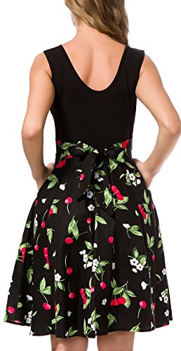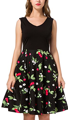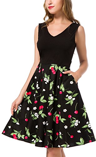 Feminine design--Deep v neck and sleeveless design is perfect for summer,slim waist style highlight your sexy body curve; Cute and stylish 50s mini dress with easy zip on and off; bonous with pocket which convenient carry with wallet,credit card,keychain etc; build the vibrant color of the flowers belt in the back to make you looks charming.