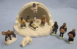ALASKA ESKIMO ANGEL NATIVITY MINI IGLOO SET 13 PIECE