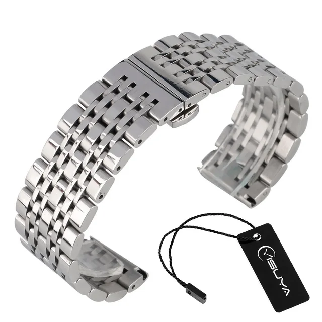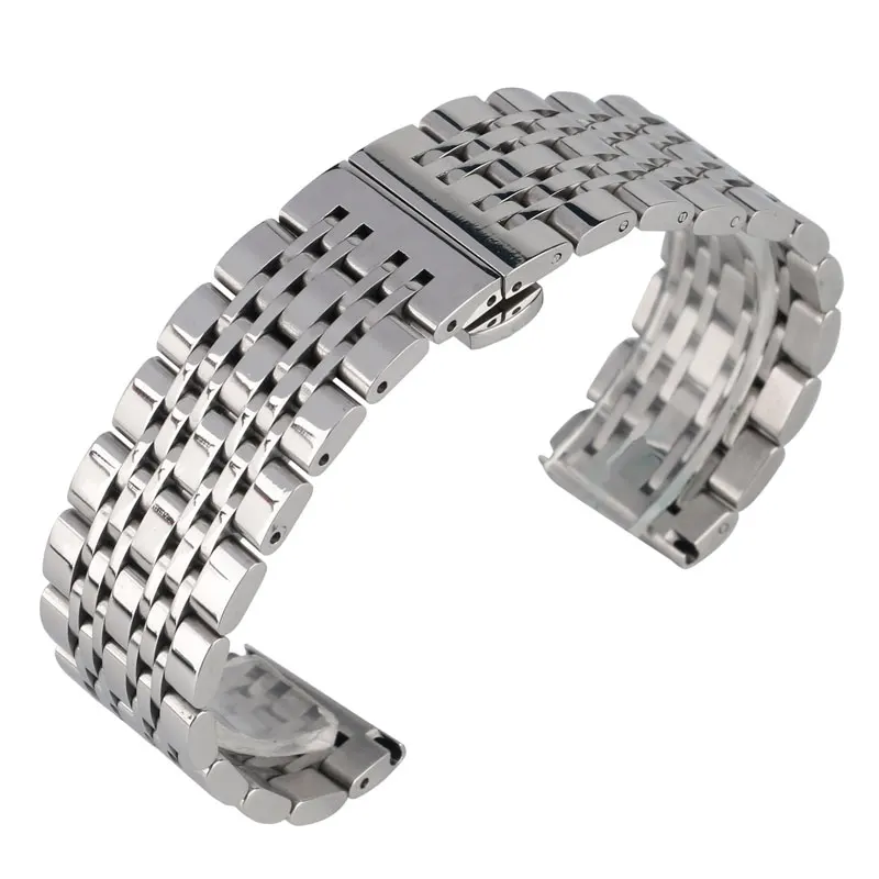 20 미리메터 22 미리메터 스테인레스 스틸 금속 스트랩 높은 품질 숨겨진 버클 손목 시계 실버 밴드 남녀 교체 솔리드 링크