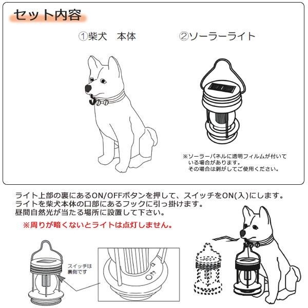 | セット内容 | 柴犬本体 ソーラーライト 取扱説明書 |