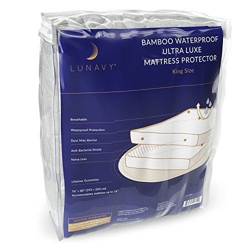 -. Brand : LUNAVY -. Color : White -. EAN : 0859525007090 -. Feature : Breathable waterproof protection / Has a dust mite barrier and anti-bacterial shield / Noiseless - will not make crinkle sound / Will not change the feel of your mattress / Lifetime Guarantee -. Label : Lunavy -. Manufacturer : Lunavy -. ProductGroup : Home -. ProductTypeName : HOME_BED_AND_BATH -. Publisher : Lunavy -. Size : King Size -. Studio : Lunavy -. Title : Premium Bamboo Waterproof Mattress Protector by Lunavy - King Size - Machine Washable Pad -. UPC : 859525007090
