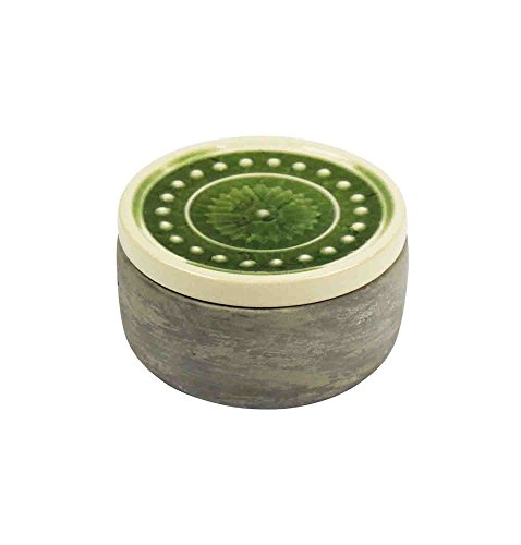 Benzara Robust Cement Jar with Green Lid
