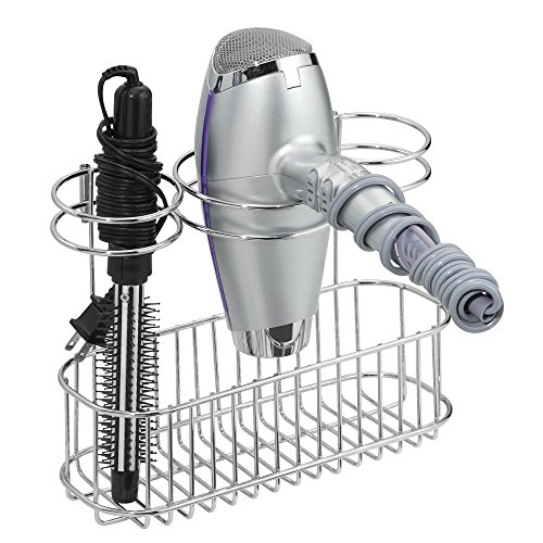 mDesign Bathroom Wall Mount Hair Styling Tools Organizer for Straightener, Hair Dryer, Brushes – Chrome