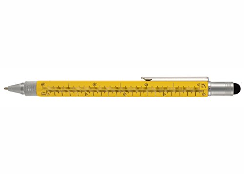 The One Touch Stylus Tool Pen from Monteverde has nine different functions. It is a pen, a level, touch screen stylus, four scales, and two screwdrivers. It has a six-sided barrel in bright yellow with black graduations. The chiseled spring clip keeps the pen secure in a pocket.