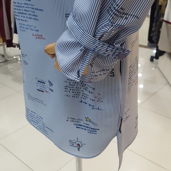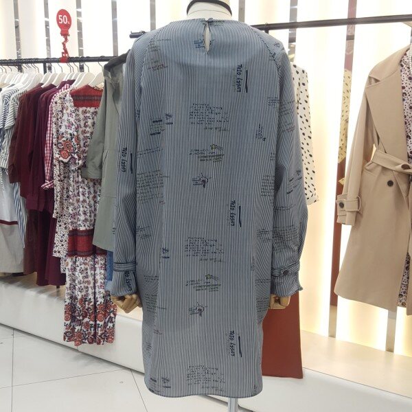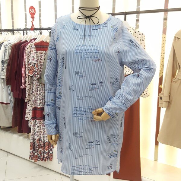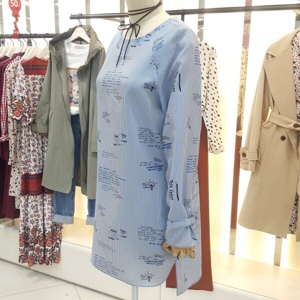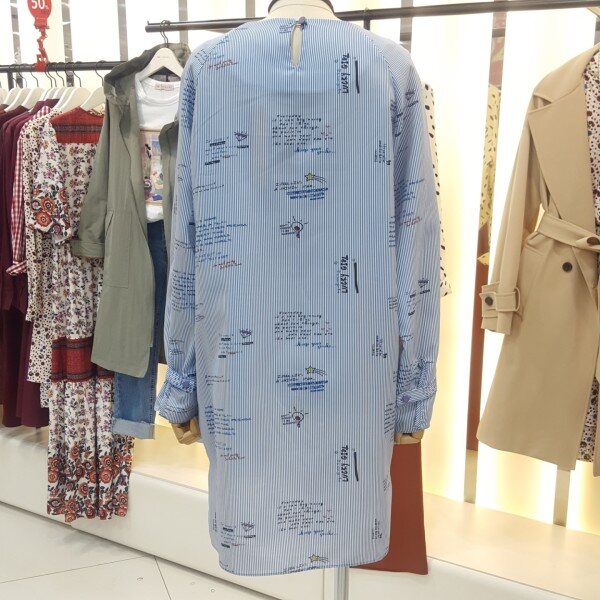 레터링 스트라이프패턴이 감각적인 캐주얼 롱 블라우스 겸 미니원피스입니다.언발란스 핏으로 유니크하며 폴리소재로 가볍고 편안햐 착용감을 줍니다.넉넉한사이즈로 미니원피스로~~스타일리쉬하게 청바지,슬랙스로 매치하시면 좋은 아이템입니다.