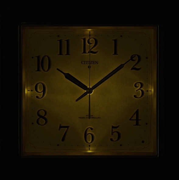 ●夜間自動点灯機能が便利な、正時メロディ付木枠電波掛時計