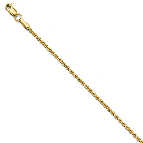 A classic rope chain features twisted solid links woven together in a spiral design that offers strength, integrity and elegance all in one. This 10-inch bracelet or anklet made of polished 14k yellow gold closes with a lobster claw clasp and is 1.75mm in width.Feature