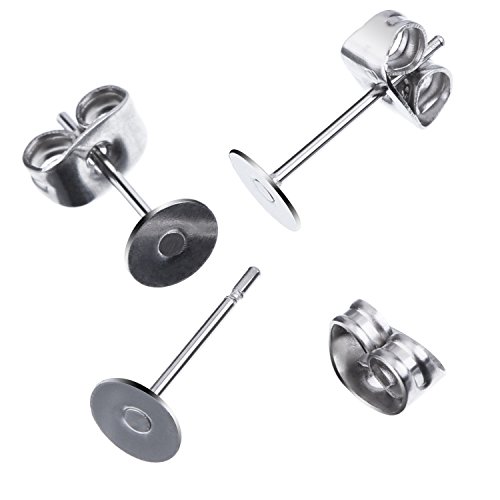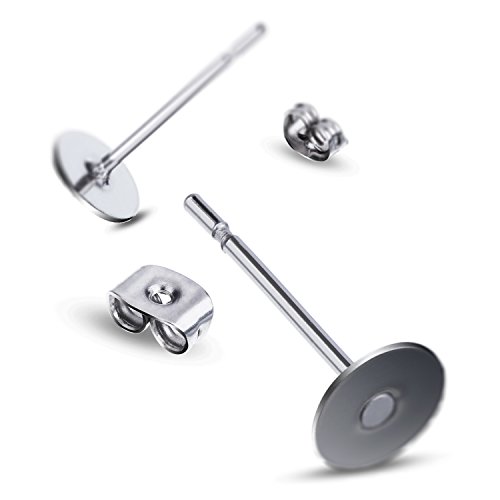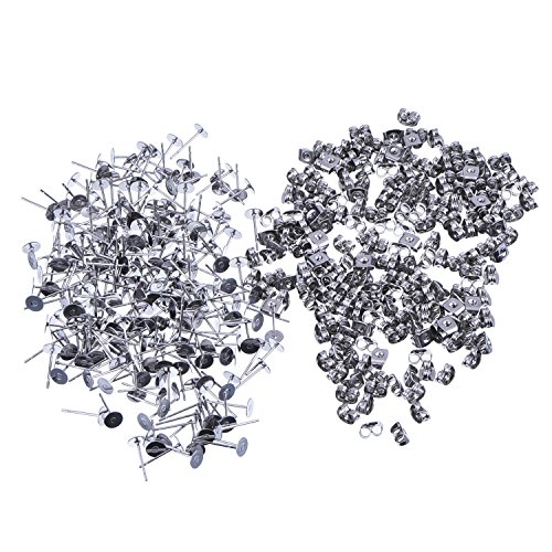 Outus 200 Pairs Stainless Steel Earrings Posts Flat Pad with Butterfly Earring Backs for Earring Making Findings (Silver)