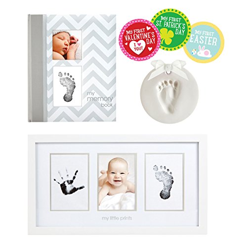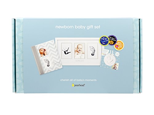 ReleaseDate : 2017-10-13 Studio : Pearhead Publisher : Pearhead Binding : Baby Product Product Description Did your best friend just have a baby? Are you shopping for your sister's baby shower? Pearhead's newborn gift set is the perfect gift for your family member or friend who is having a baby. This boxed gift set includes four of Pearhead's most popular baby gift items. They are perfect for any new mom who are excited to celebrate their little bundle of joy. This box gift set includes a baby prints photo frame, baby prints keepsake, chevron baby book, and baby's first holiday belly stickers. Each item is perfect for celebrating the arrival of baby and baby's first year. These adorable baby keepsakes can be cherished forever. Baby prints photo frame and the chevron baby book include 100% baby safe clean-touch ink pads to capture baby's handprint or footprint and the baby prints keepsake includes impression material to create imprints of baby's little piggish. This boxed gift set is packaged in an adorable blue gift box and makes the perfect gift. You don't even need to wrap it. Simply surprise your friend at their baby shower and see how excited she is to get her Pearhead bundle. This is also perfect for any new mom buying a little something for herself. Forever cherish your little one with Pearhead's expecting mom gift set. Product dimensions: varying; Photo insert: baby prints photo frame 4" x 6"; photo insert: chevron baby book 3" x 3".