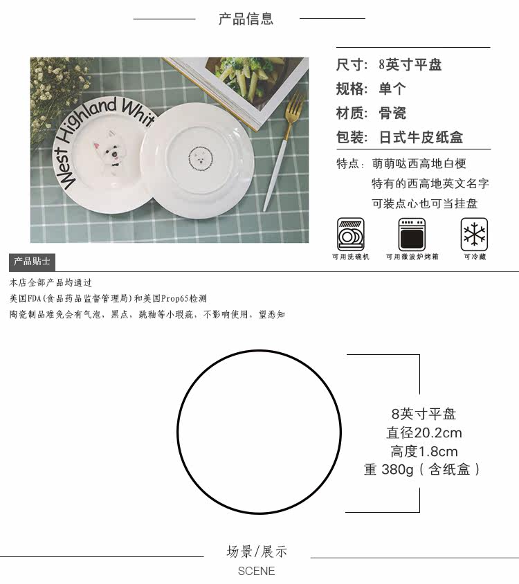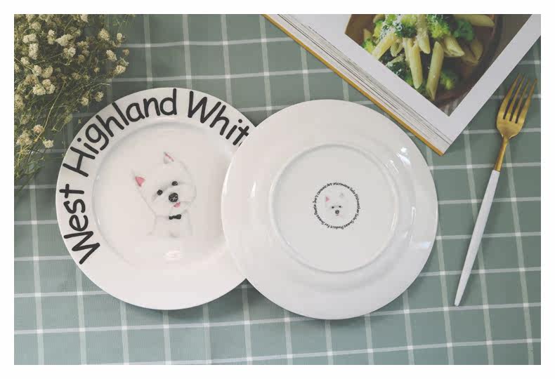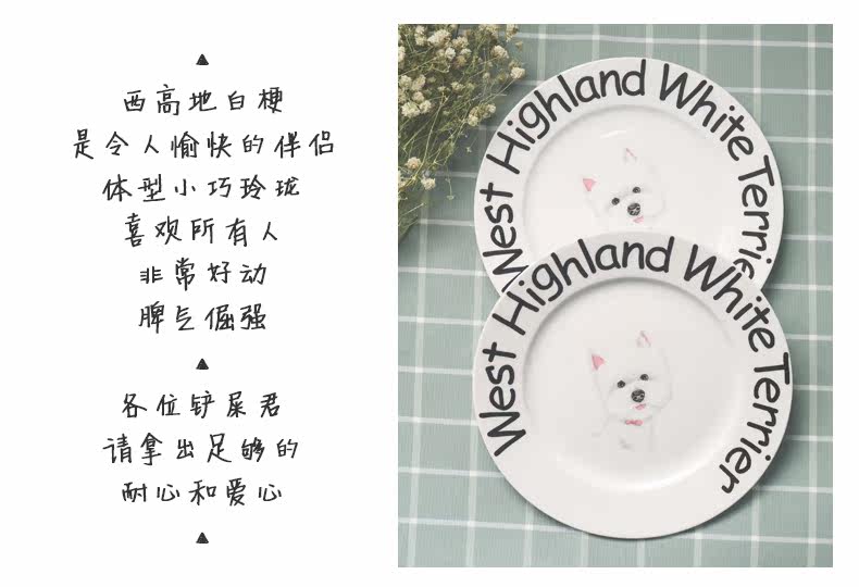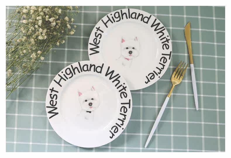 西高地系列陶瓷字母早餐盘西餐牛排平盘创意菜盘子蛋糕水果装饰盘
