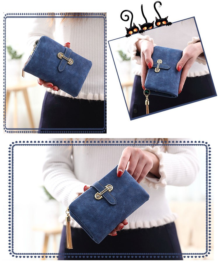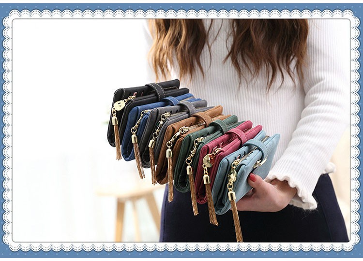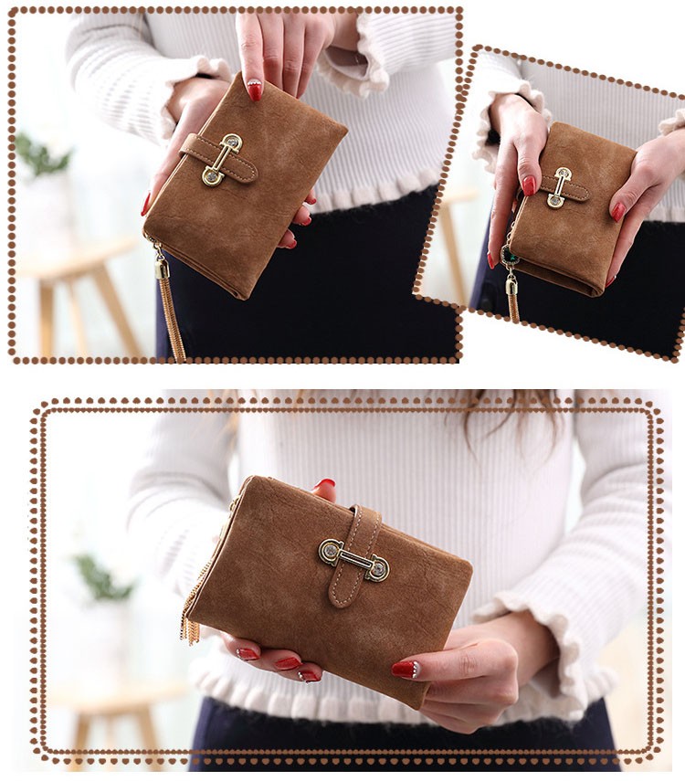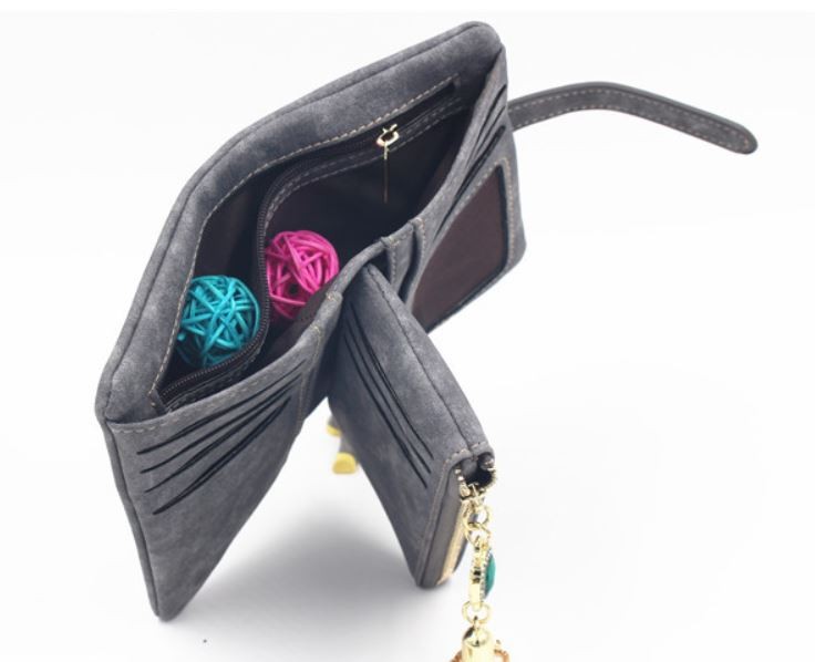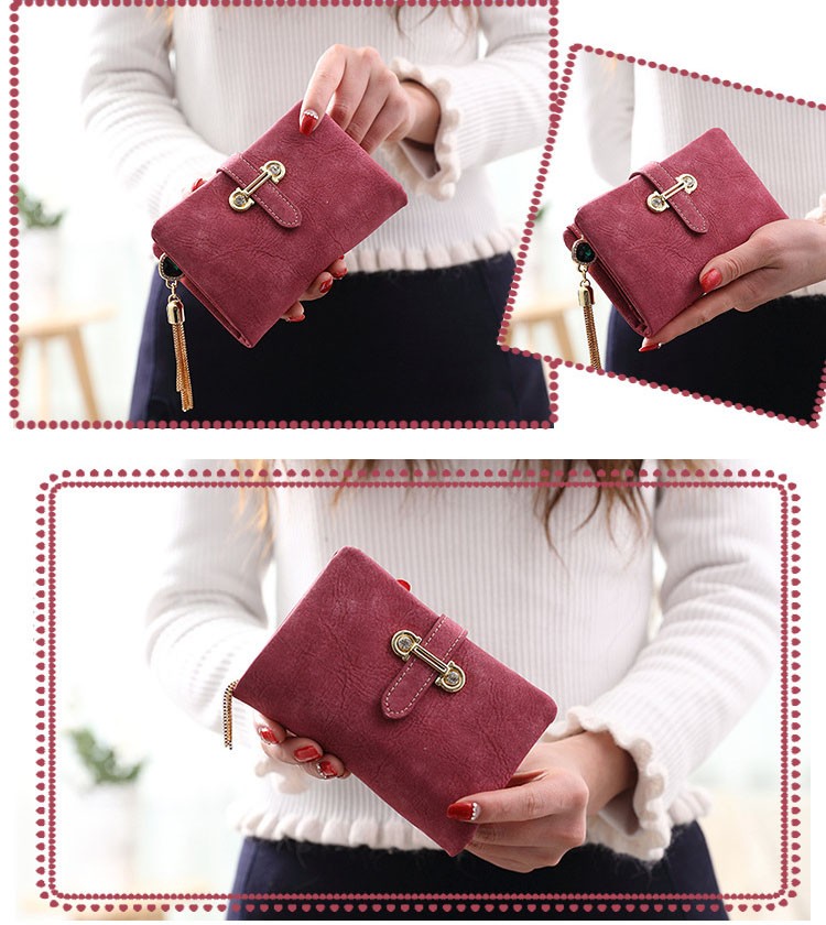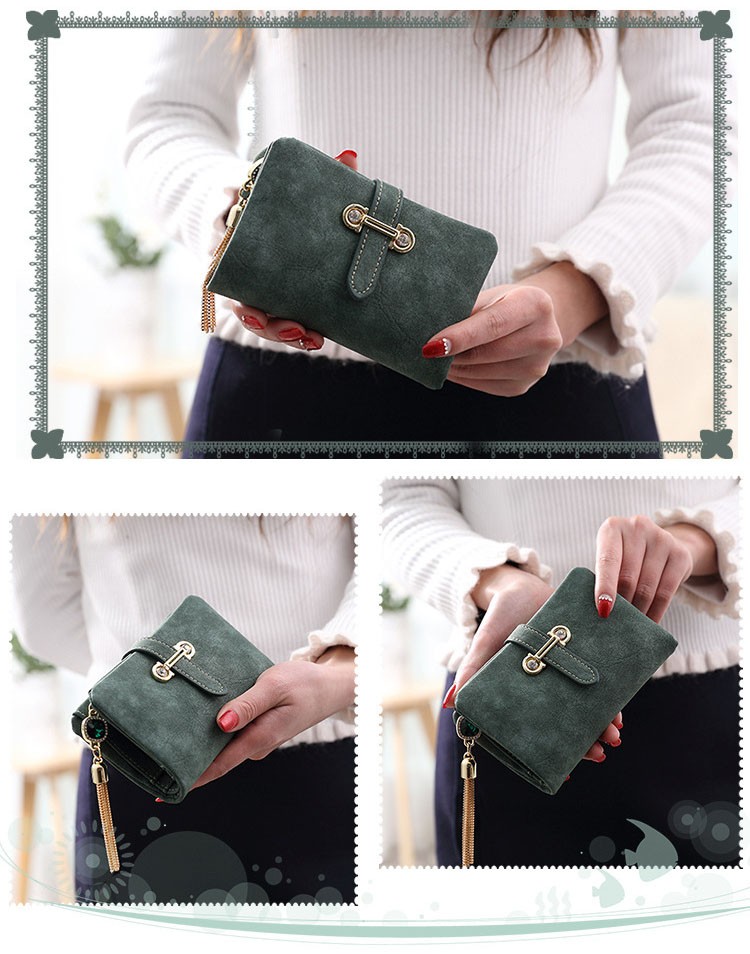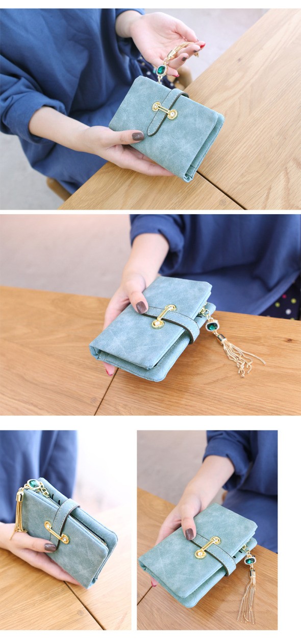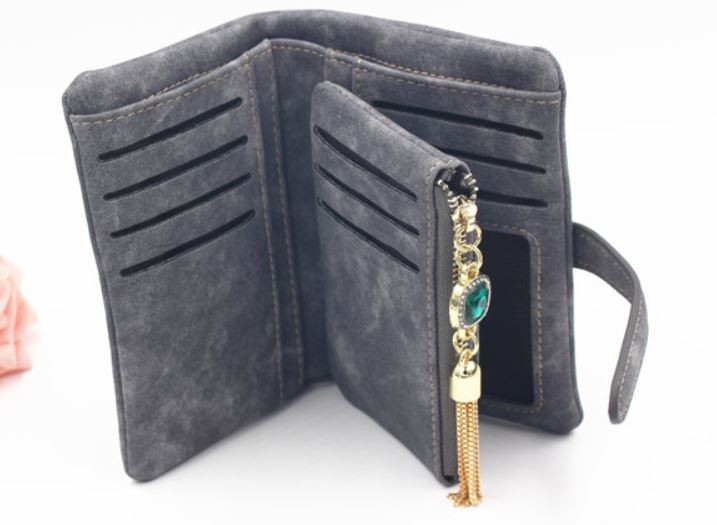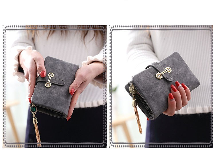 マットな質感とジュエリーのようなタッセルチャームがトレンド感溢れる二つ折り財布。カード類の収納に便利な豊富なポケット、ジップ付きの小銭入れと実用性抜群。通勤、通学の必需品のICカードもしっかりと収納できます。