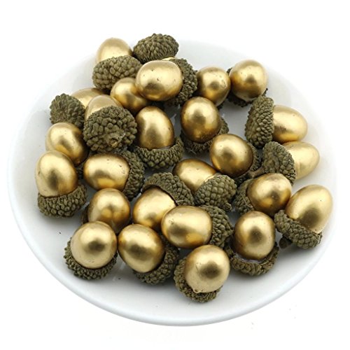 Gresorth 50 PCS Gold Artificial Acorn Fake Golden Acorns DIY Craft Material Home Party Christmas Decoration