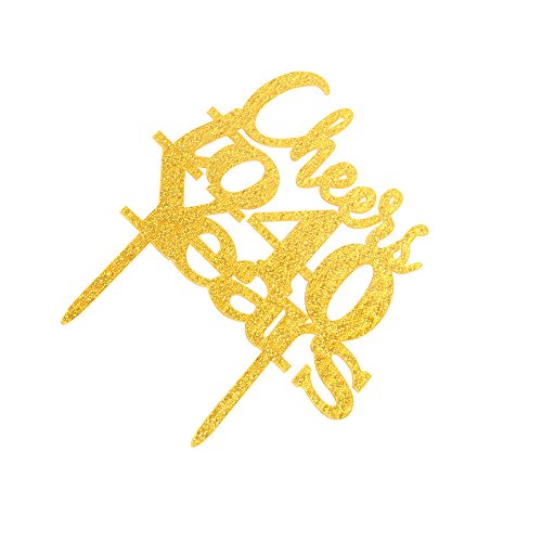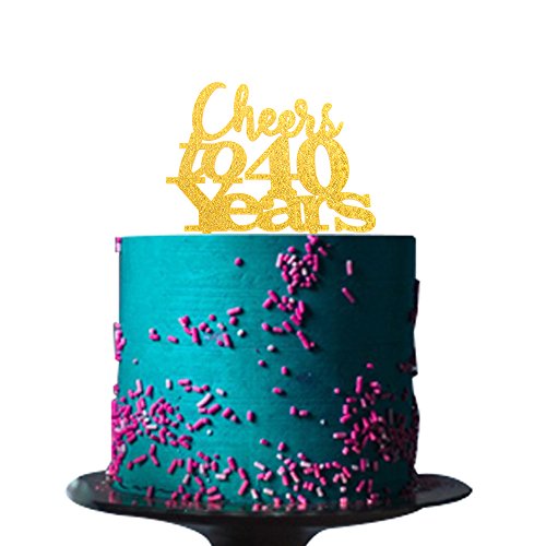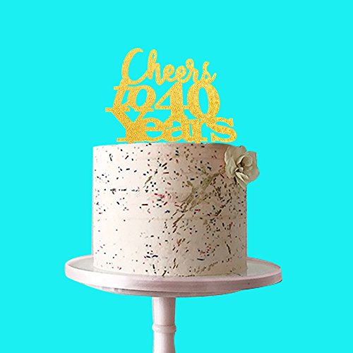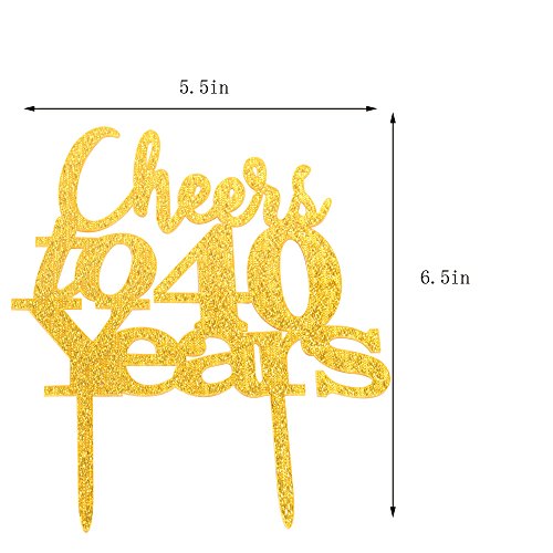 Cheers to 40 years cake topper gold acrylic for 40th birthday,anniversary or friendship cake party decoration