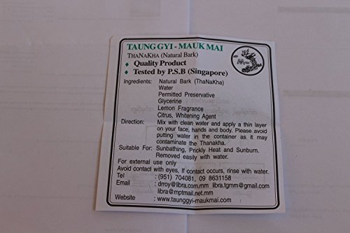 Studio : Shwe Pyi Nann Publisher : Shwe Pyi Nann Binding : Misc. Product Description Skin tightening and cooling.Easy application to overall, cleaned skin.Fits all skin types and all ages (women, men and children) Also you can mix with other ingredients Tanaka further below. - Honey (for dry skin. Adds moisture) - Tamarind (For skin with dark spots). - Fresh milk (for the skin to the skin). - Yogurt (for the skin to be soft and clear). By applying the Shwe Pyi Nann's Natural Whitening Thanakha regularly at the face , neck and hand every night , your skin will effect as natural whitening beauty and harmless the skin during 45 days . Moreover , you use it regularly , it can entirely protects the skin not to be brown color and whiten your skin forever hanakha is a very effective and economical beauty product. It removes pimples and acne, freckles, dry skin , wrinkled skin , promotes smooth skin, tightens open pores, gently removes blackhead and whiteheads, heals sunburn or any mild burns, removes rashes and lessens oiliness of the skin. It is a natural moisturizer. 0