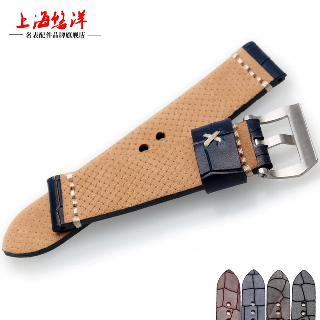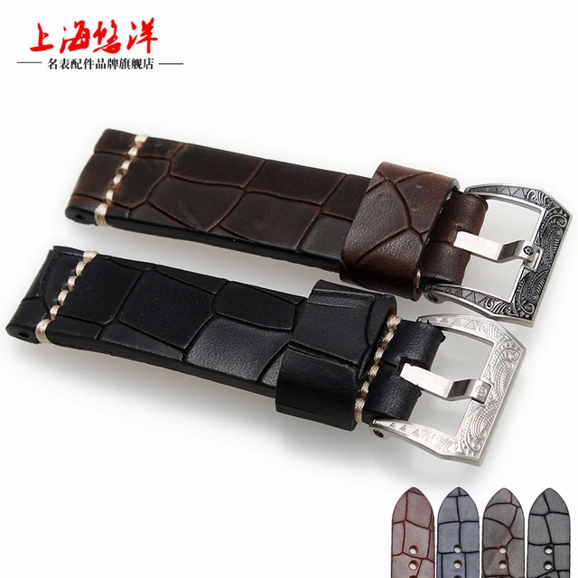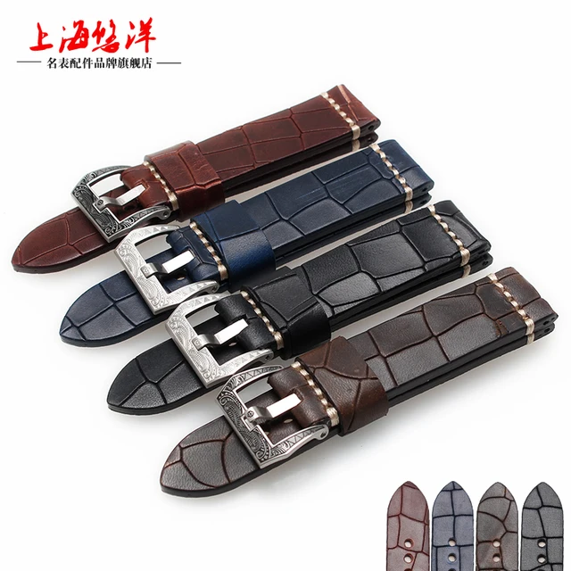 | [해외]2017 새로운 스타일의 22 미리메터 24 미리메터 빈티지 정품 가죽 스트랩 팔찌 복고풍 시계 밴드 스테인레스 스틸 버클 여성 남성 |