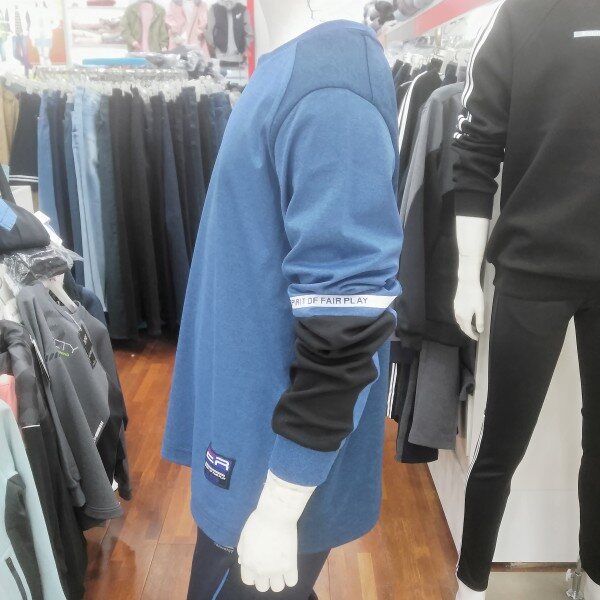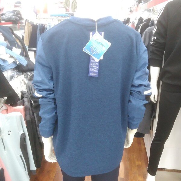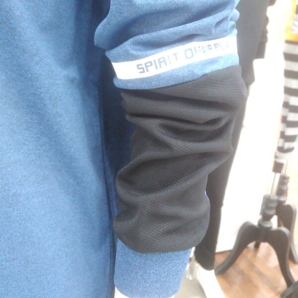 양쪽 소매 부분의 배색이 포인트인기능성 티입니다.파란색을 좋아한다면 부담 없는 티셔츠입니다.