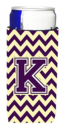 Letter K Chevron Purple and Gold Ultra Beverage Insulators for slim cans CJ1058-KMUK