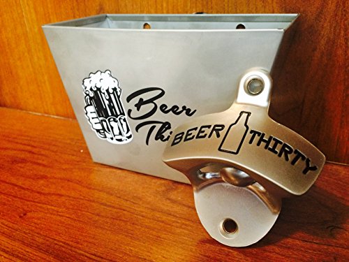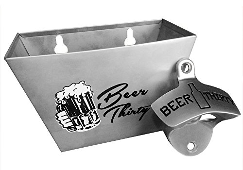 - MODERN & DURABLE: The opener has Nickel Matted finish to give it a modern design and is built well while telling you it's "Beer Thirty". The cap catcher is stainless steel and sports the design of "Beer Thirty"