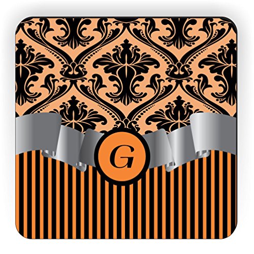 Rikki Knight Letter "G" Initial Orange Damask and Stripes Monogrammed Design Square Fridge Magnet