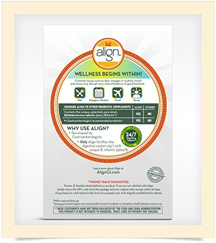 -. Feature : Naturally helps fortify your digestive system with healthy bacteria 24/7*§. / We may have a new look, but Align is the same great probiotic supplement. / Align is the #1 gastroenterologist recommended probiotic*** ***Among gastroenterologists who recommended a brand of probiotic in a Source Healthcare Analytics, LLC 2012 survey. / Align contains the natural probiotic strain B. infantis 35624, a unique probiotic strain offered by no other product, including Store Brands. / B. infantis 35624 is a unique probiotic strain offered by no other product, including Store Brands.