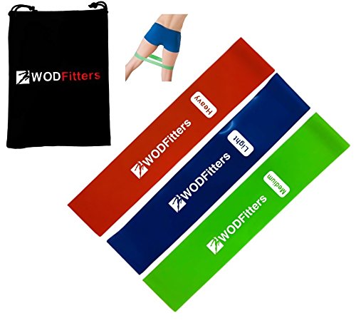 - Title : Set of 3 Resistance Bands - 3 Loop Exercise Bands Set with Carrying Bag from WODFitters (TM) * Strengthen and Tone Legs, Hips, Glutes and Arms * 3 Colored 10" x 2" Workout Bands with Different Resistance Levels: Light, Medium, Heavy * Perfect for Cross Fitness Training, Stretching, Rehabilitation, Mobility Work, Muscle Activation, Yoga, Pilates and Home Gym * These Straps Can Replace Your Equipment (Light, Medium, Heavy)