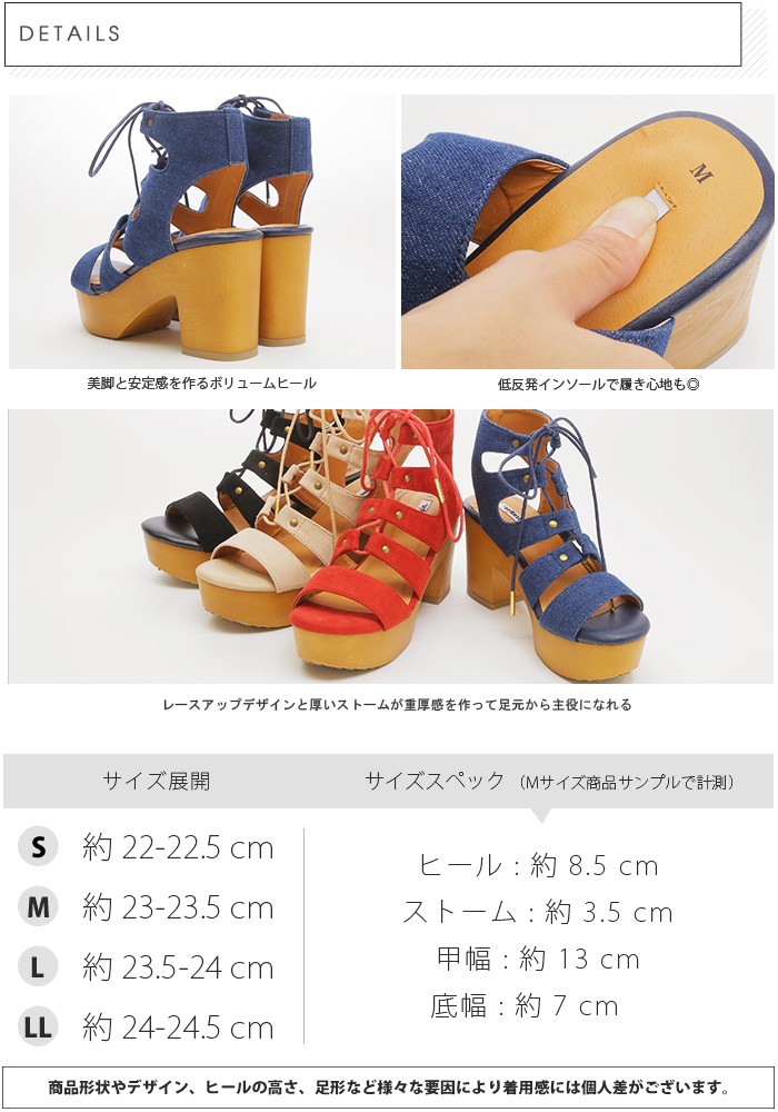 | カラー | 01. ブラックスエード 02. ベージュスエード 03. レッドスエード 04. デニム | 注意点/TH>▼綿混合商品は洗濯時に多少縮む事がございます。 ▼パソコン、モニター等の環境により、実際の商品素材カラーが多少異なる場合が御座います。予めご了承ください。 |