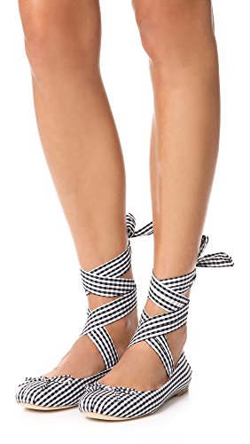 Product DescriptionClassic Jeffrey Campbell ballet flats updated in cheery gingham. Petite bow accent and ankle ribbons. Manmade sole.0
