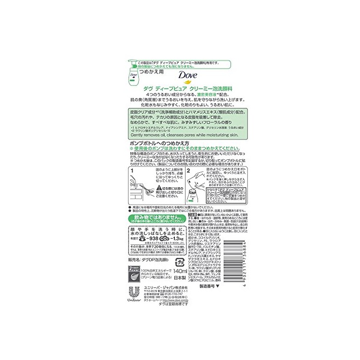 원본상품명: ダウ? ディ?プピュア クリ?ミ?泡洗顔料 つめかえ用 140ml