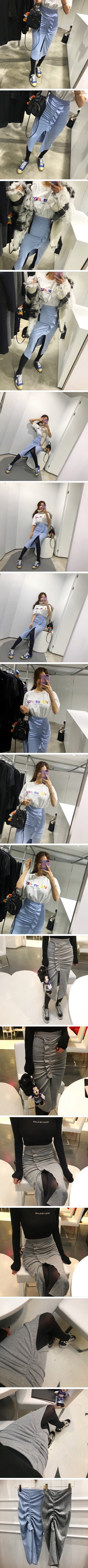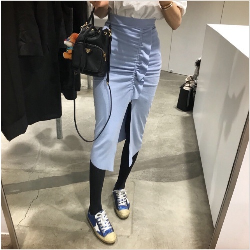 Women`s Ruffled Long Skirt Slit Skirt Light Blue Gray