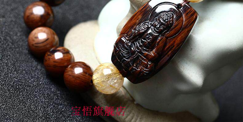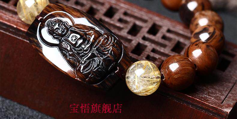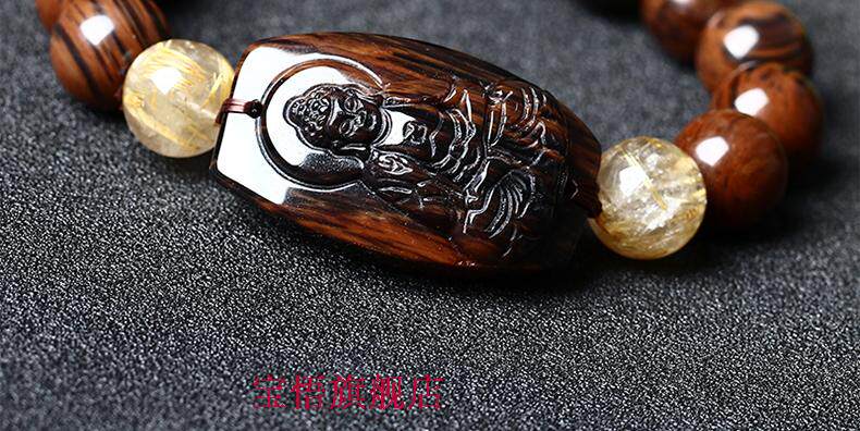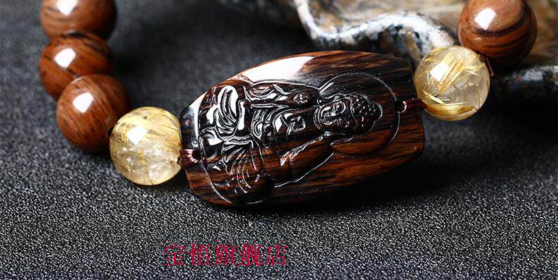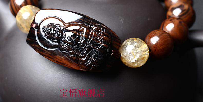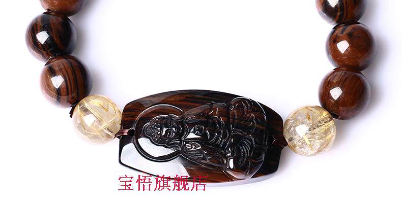 开光天然红竹石金丝红曜石阿弥陀佛生肖属狗属猪本命佛守护神手链