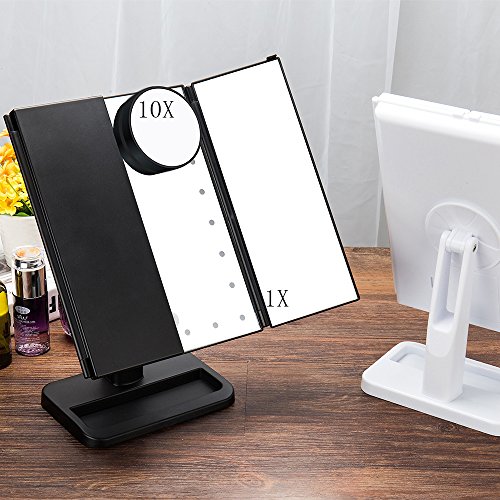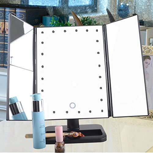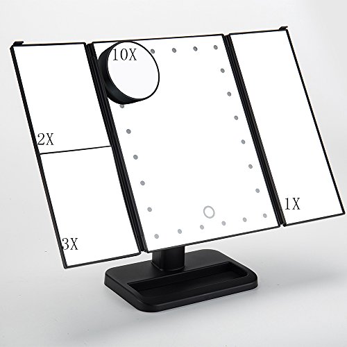 Lighted Makeup Mirror Trifold 24 Led Lights with Touch Screen,10X3X2X1X Magnification and USB Charging or Battery powered,180°Adjustable...