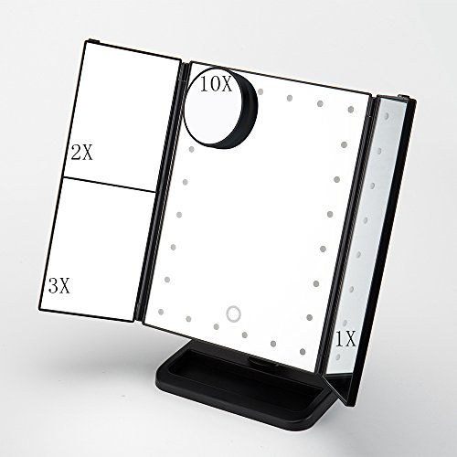 - 10X/3X/2X/1X MAGNIFICATION MIRROR: 3 panels magnifying and a wide-angle viewing for you to see clearly your facial features and make a more perfect makeup with each detail taken care of. When you do not use it, you can keep it folded so as to prevent dust that you care about.