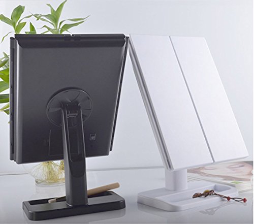 - PERFECT LIGHTING: Our cosmetic mirror is built with 24 LED lights adjustable to the touch. With its dimmable feature, you can now apply makeup in a dark room or poorly lit areas. With one touch, you can turn on our makeup mirror. Take advantage of the double power supply. Our mirror can be used with 4 x AAA batteries (NOT included) or with the USB cable (included)!
