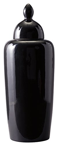 - HIGH SHINE GLAZE: This urn vase is finished in midnight black with a glaze that amplifies it's modern construction.