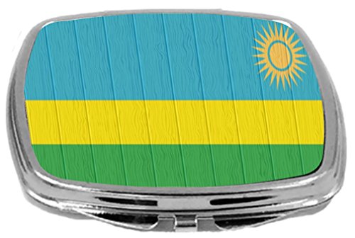 Rikki Knight Compact Mirror on Distressed Wood Design, Rwanda Flag, 3 Ounce