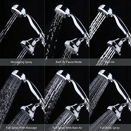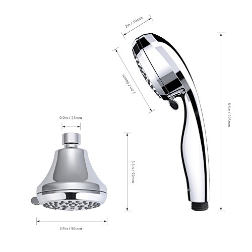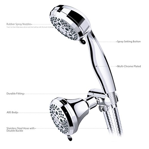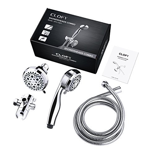 CLOFY 28-Setting Combo Shower Head with Holder & Hose, Full-Chrome Handheld & Rain Shower Head