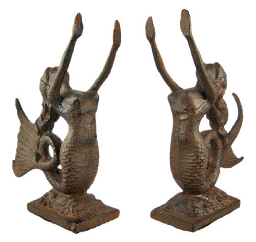 Cast Iron Mermaid Bookends Book Ends Antiqued Finish