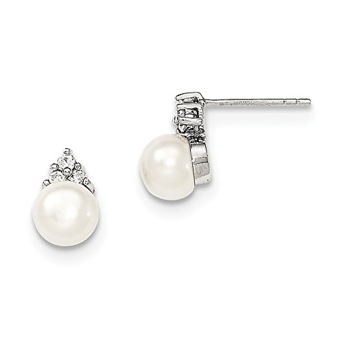 Sterling Silver 6-7mm White FWC Simulated Pearl CZ Cubic Zirconia Post Earrings