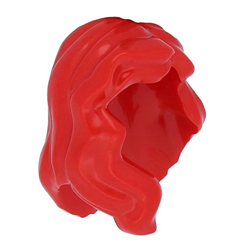 -. Feature : LEGO Minifigure Parts: Red Minifig, Hair Female Mid-Length with Part over Right Shoulder x1 Loose