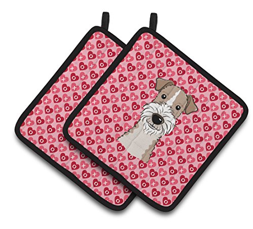 Caroline's Treasures Wire Haired Fox Terrier Hearts Pair of Pot Holders, 7.5HX7.5W, Multicolor