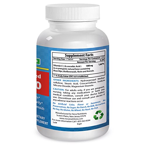 -. Binding : Health and Beauty -. Brand : Nova Nutritions -. EAN : 0732363270218 -. Feature : Maintains a healthy cardiovascular system* / Supports Immune System* / Promotes healthy collagen, skin and wound healing* / Antioxidant Protection* / Top Quality - Laboratory Tested - Sustained-released formula delivers a steady stream of nutrients over time -. IsAdultProduct : 0 -. Label : Nova Nutritions -. LegalDisclaimer : * These statements have not been evaluated by the Food and Drug Administration. This product is not intended to diagnose, treat, cure or prevent any disease. -. Manufacturer : Nova Nutritions -. PackageQuantity : 1 -. ProductGroup : Health and Beauty -. ProductTypeName : HEALTH_PERSONAL_CARE -. Publisher : Nova Nutritions -. Studio : Nova Nutritions -. Title : Vitamin C-1000 mg 240 Tablets (Time Released) by Nova Nutritions -. UPC : 732363270218