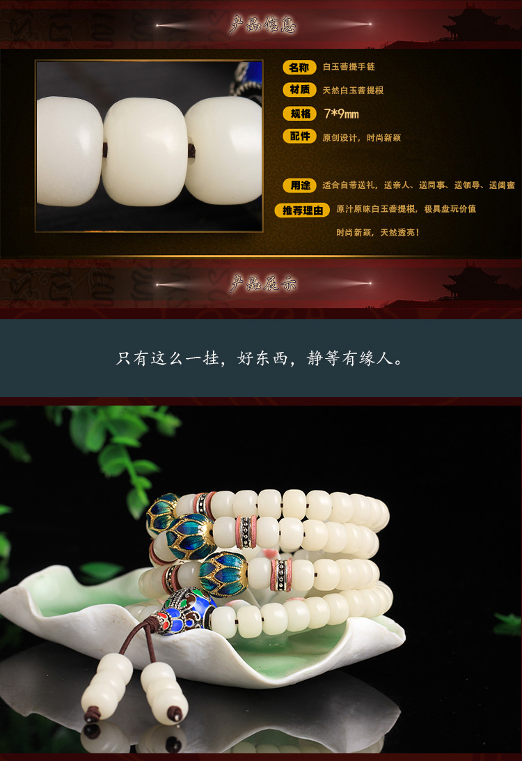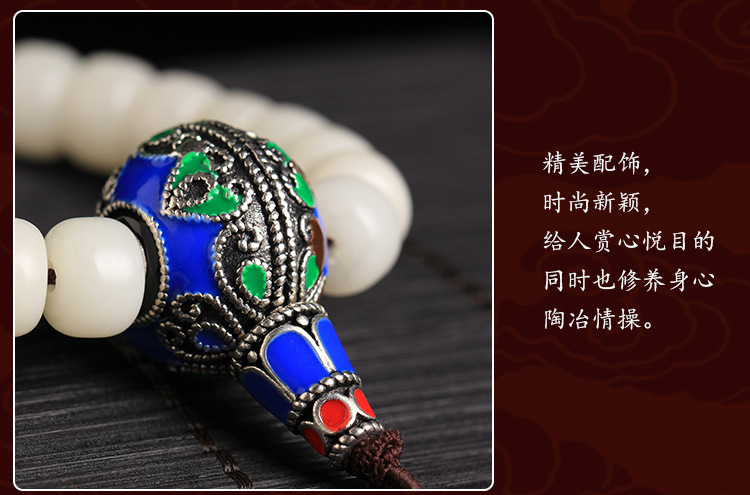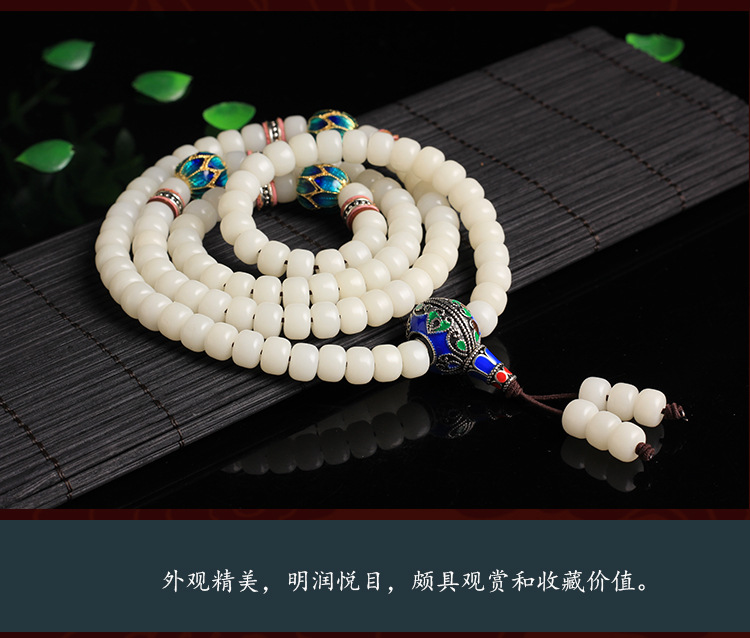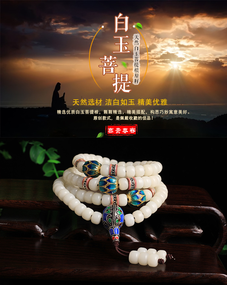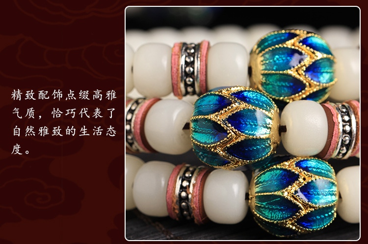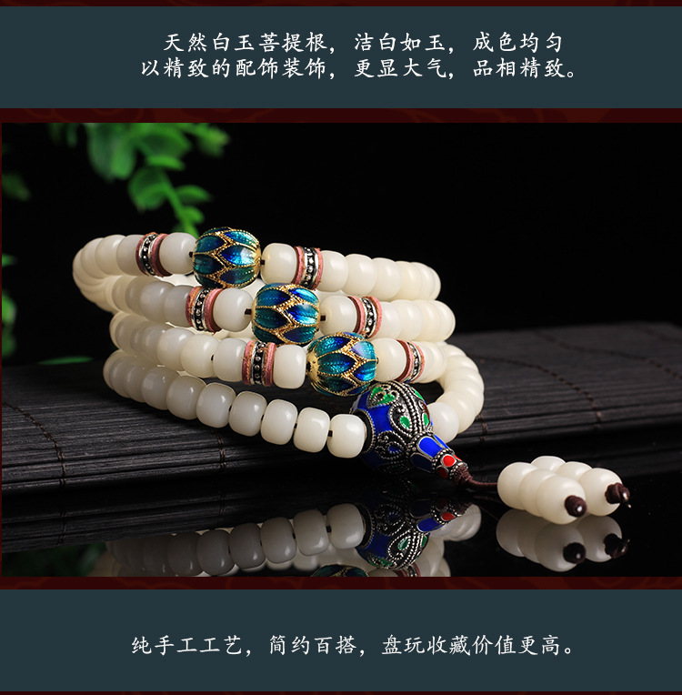 白玉菩提根108颗佛珠手链景泰蓝情侣款配饰项链