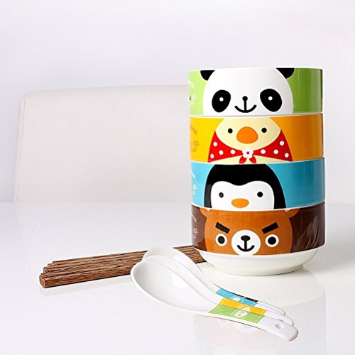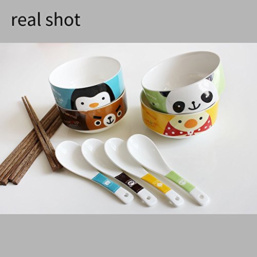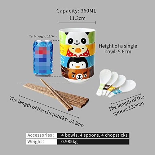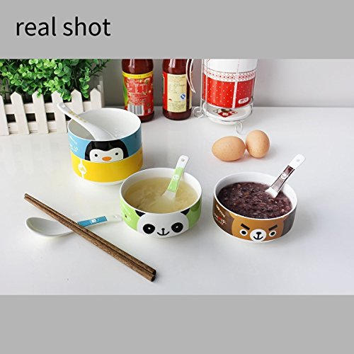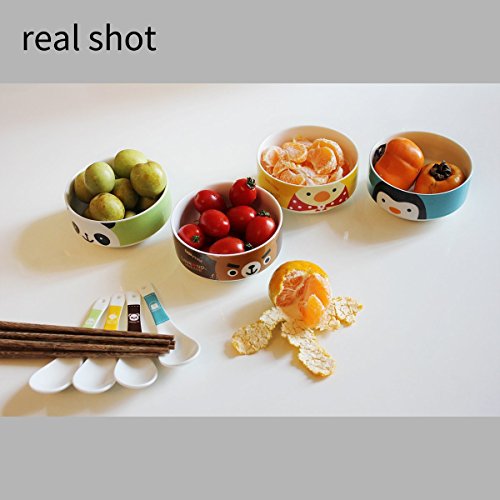 ➤4 ODM cute animals design. Material: made of high quality ceramic and wooden(chopsticks), The bowl size is 360ml(12.2oz), suitable for cereal, dessert, appetizers, snack, salad, soup and anything you like for everyday dinning, which create a cute table bringing joy. best choice for home.