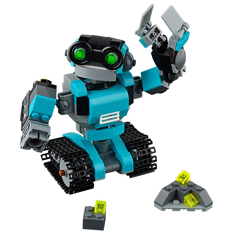 Turn on the cool search light function on the right hand or carry things with grab hands! You can turn a robot dog with a shining jet pack or a robotic bird that glows eyes!